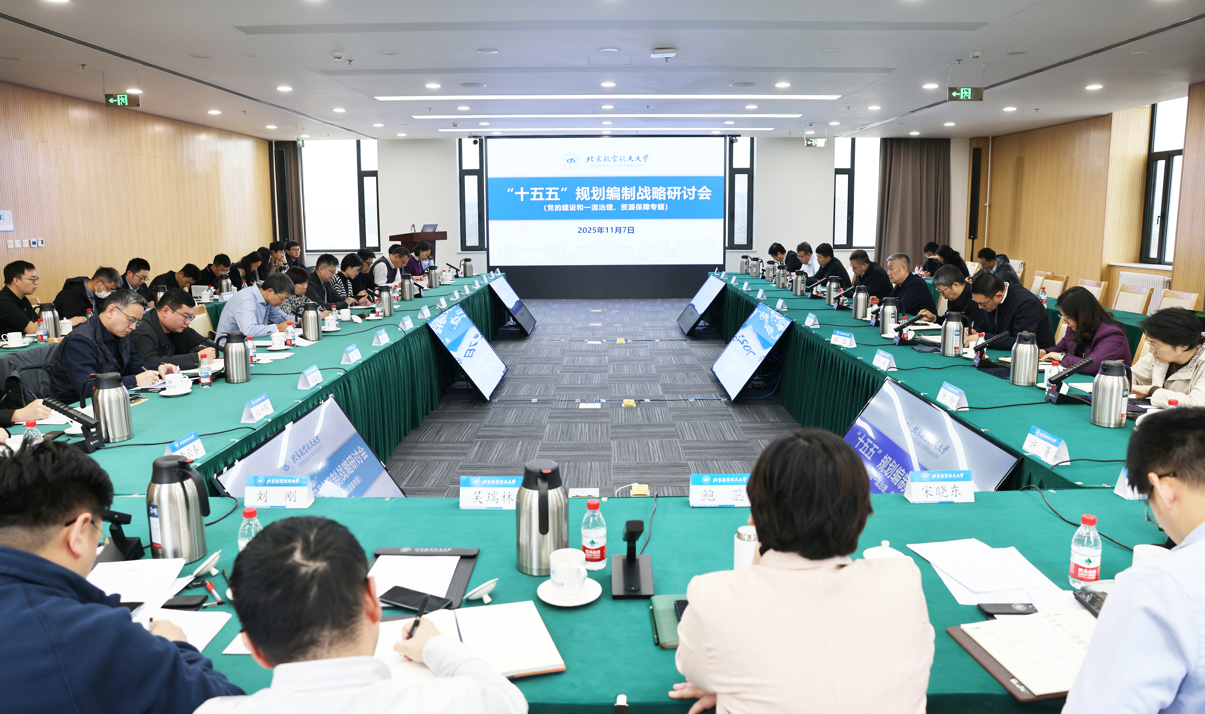 北航新闻网11月8日电(通讯员 张雨飒 冯坤 刘秀东 雷池/文 记者 邸白鹭/摄影)11月7日上午,聚焦党的建设和一流治理、资源保障专题,学校在沙河校区八号楼1301会议室召开“十五五”规划编制第五场战略研讨会。党委书记赵长禄和相关校领导、教师代表、教学科研机构负责人代表、学校规划编制领导小组成员单位负责人等参加会议。