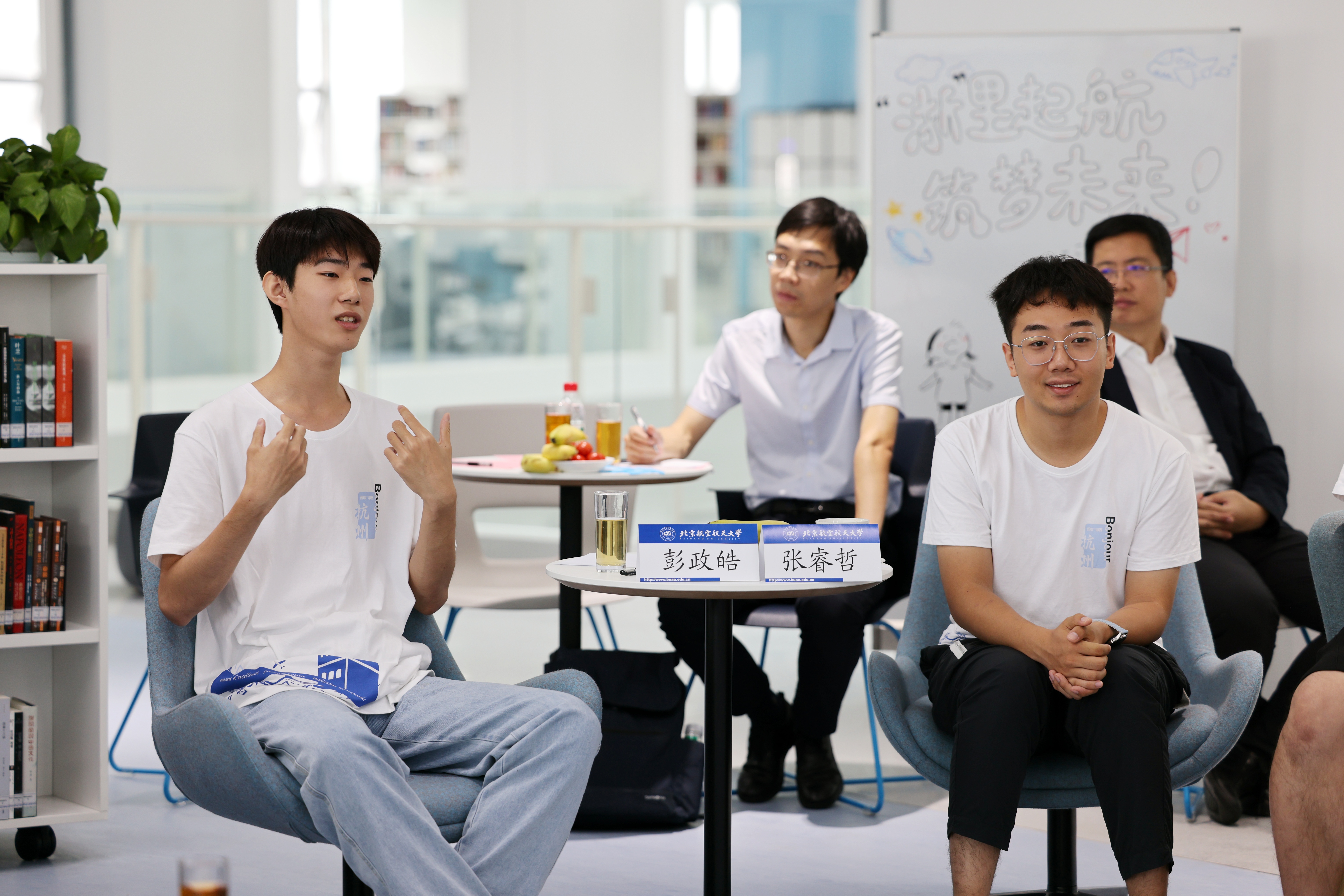 “我代表学校,欢迎同学们加入北航大家庭!”王云鹏对同学们成为新北航人表示欢迎和祝贺。同学们逐一讲述了自己的成长经历和与北航结缘的契机,分享了入学之初的感受和期待,纷纷表达了投身祖国航空事业的热情和决心。