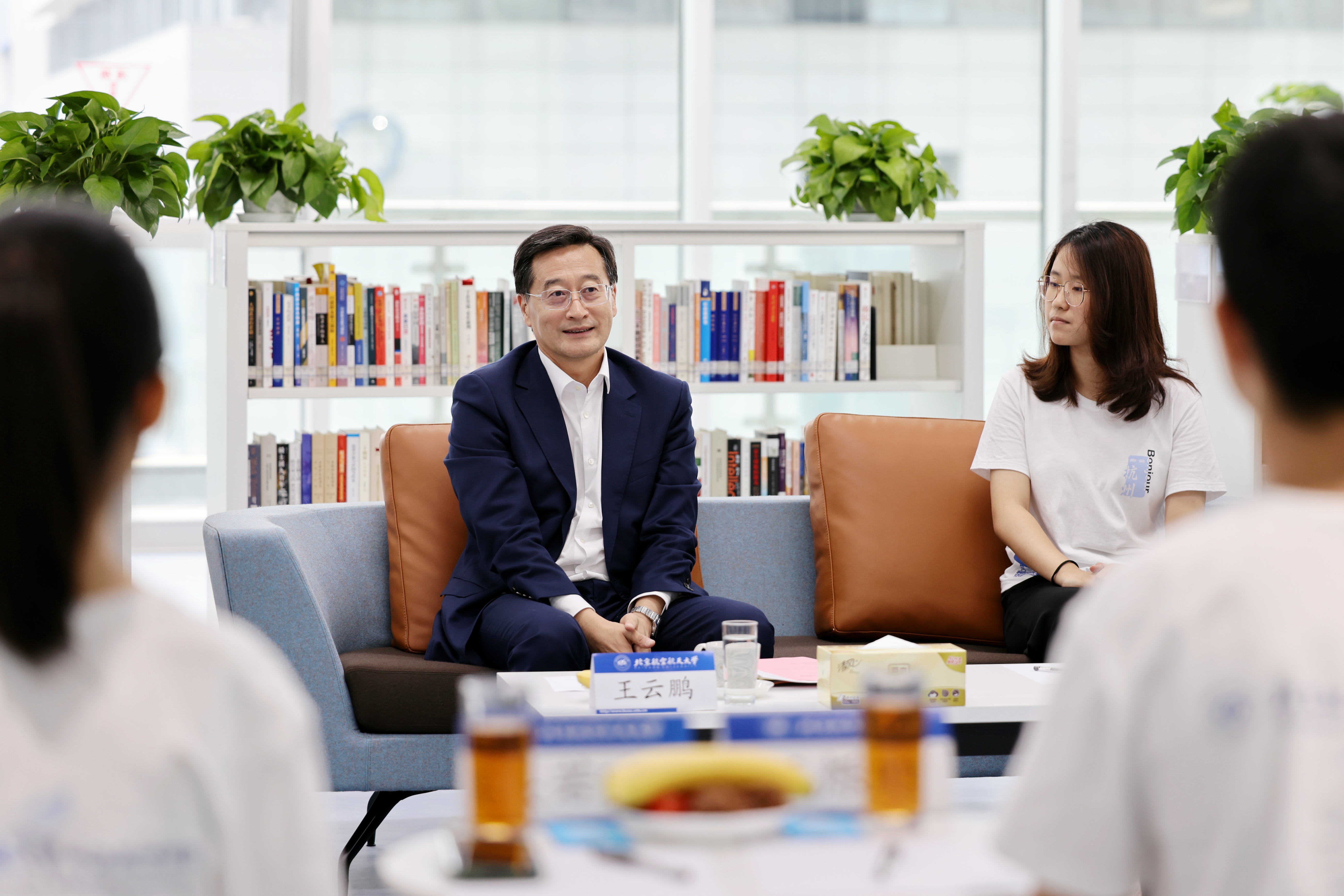 座谈中,王云鹏仔细聆听并记录同学们的发言,不时和大家交流互动,对同学们热爱航空航天事业、立志报效祖国的心声和兴趣爱好广泛、憧憬未来发展的朝气表示充分肯定。他深入浅出地讲述了北航建校历史和校园文化,介绍了中法航空学院的办学定位与人才培养模式,对大家在大学如何学习成长提出建议和指导。王云鹏指出,北航自建校之初就是一所创新、协作、包容的大学,如何为同学们提供不同的“套餐”,满足普遍性需求和个性化需要,是学校始终思考的问题。中法航空学院致力于提供精英式、小班化、个性化教育,希望同学们过好课业关、语言关,中法航空研究院实验室将结合人才培养需要建设,形成连贯体系和培养支撑,让同学们能走进大飞机、自旋芯片等实验室开展科研,打造一流的教学科研环境。