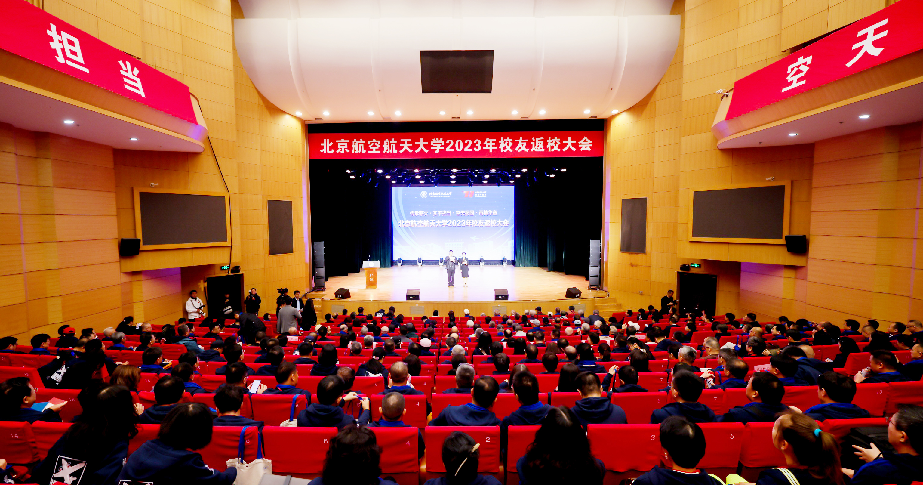北航新闻网10月28日电(记者 王晴/文 邸白鹭/摄影)追忆往昔岁月、共叙师生情谊,10月28日上午,2023年校友返校大会在晨兴音乐厅举行,近2000名校友返回母校参加大会。党委书记赵长禄,校长王云鹏,党委副书记、纪委书记何新洲,副校长刘树春、张海兰,党委副书记程波、杨立军,副校长赵巍胜出席大会。