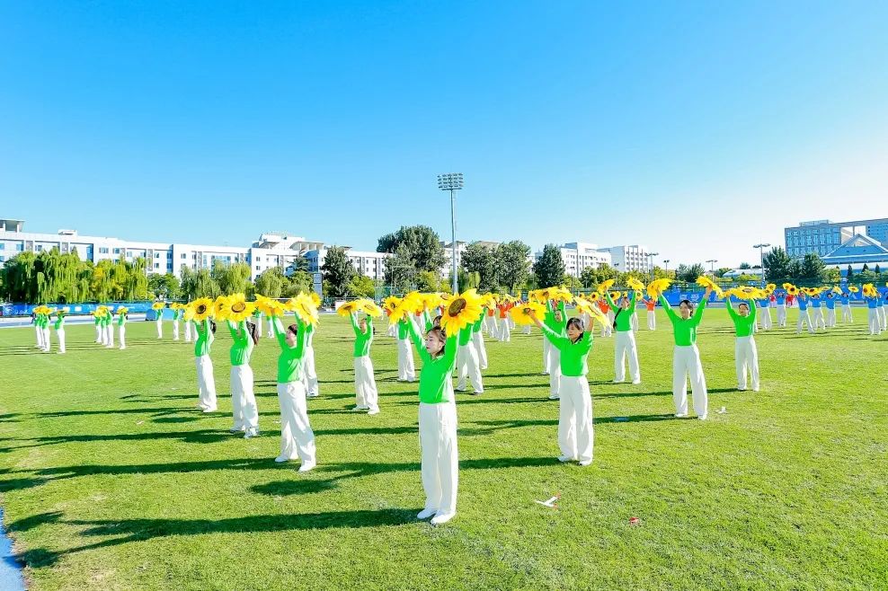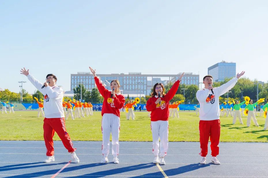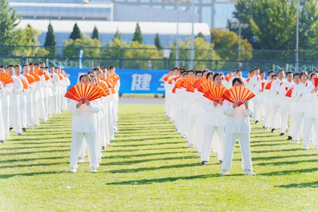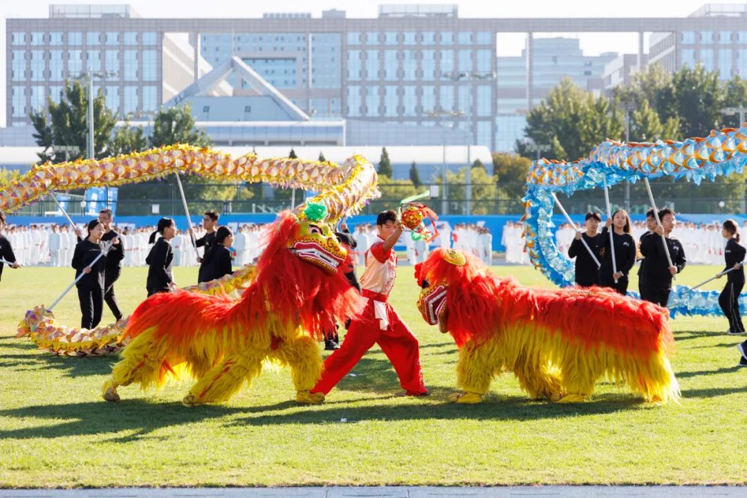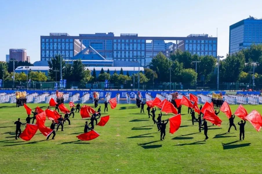 1570名师生共同呈现了精彩纷呈的体育文艺展演,展示北航体育文化建设丰硕成果,带观众领略体育之美。700余名北航学子展旗扬剑,进行功夫扇、舞龙舞狮等武术风采展示,飒爽英姿、动静结合,尽显中华武术独特魅力,引起现场掌声雷动;300余名大一新生伴随《一起向未来》的音乐热情律动,用啦啦操表演展现出青春活力和体育竞技的融合魅力;300余名瑜伽课学生将瑜伽体式与舞蹈融为一体,动作轻盈优雅、美观大方;100余名北航教职工献上原创歌舞《激越北航》,整齐划一的舞蹈动作与歌词交相呼应;在国家、市级等体育赛事中获得金牌的运动员师生代表亮相,他们为校争光、屡创佳绩;学生艺术团管乐组、打击乐组和旗队密切配合,奏响《歌唱祖国》的旋律,步伐整齐划一、乐声完美交织,极富动感和视听冲击力。