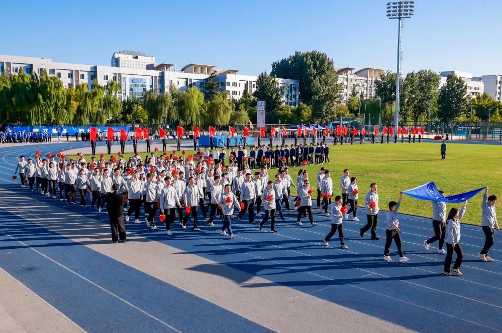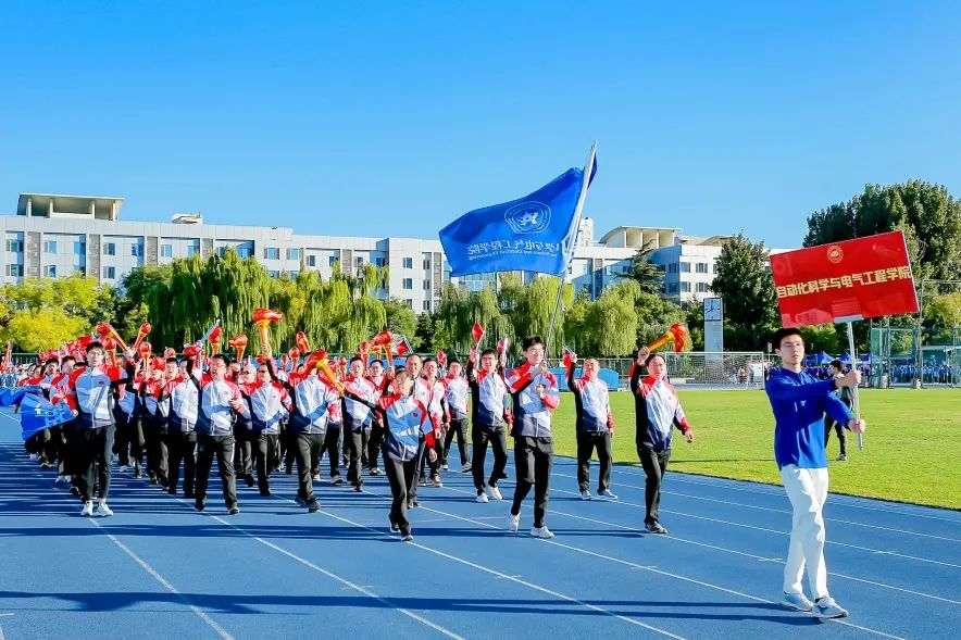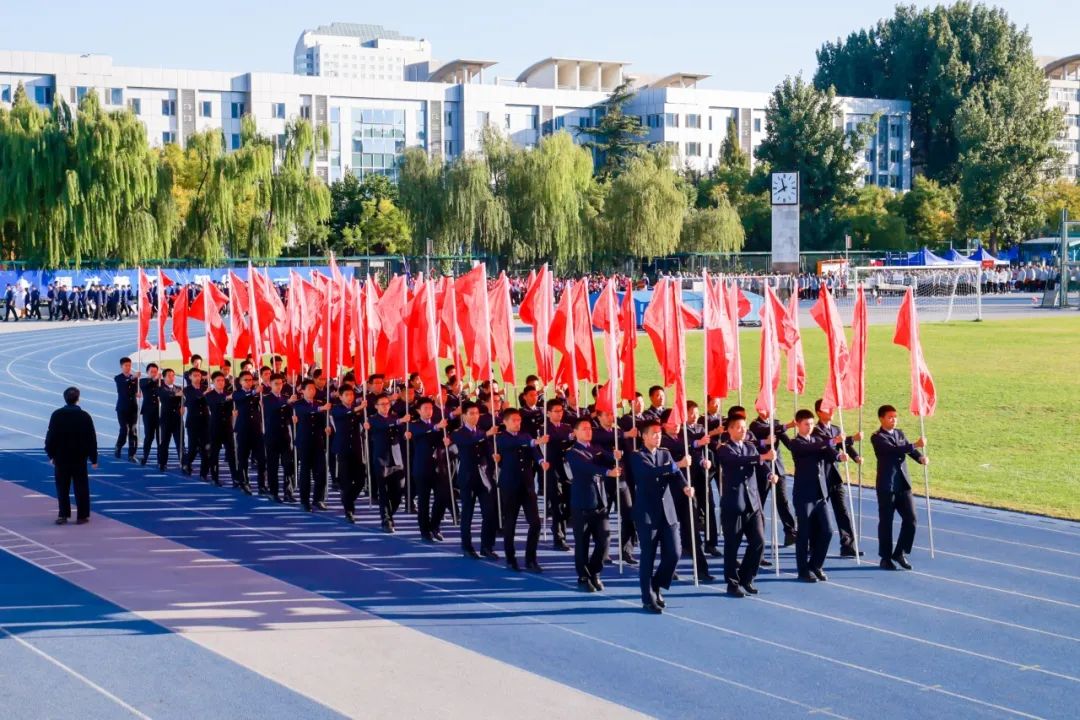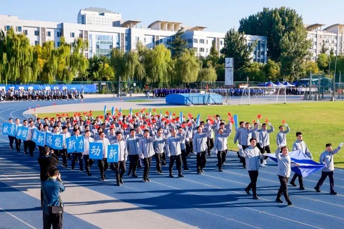 10月14日上午8时,伴随着激昂的乐声,运动会燃动开幕。由国旗、校旗为前导队,首旗方阵由各学院党委书记和院长、机关部处和服务支撑机构负责人带队的3000余名师生组成的44个方阵,尾旗方阵踏着铿锵有力的步伐,依次走过主席台接受检阅。各代表队身着特色服装,热情挥舞着手中的红旗和花束,昂首挺胸的姿态与掷地有声的口号展现出北航师生激情、奋进、拼搏、超越的精神底色。
