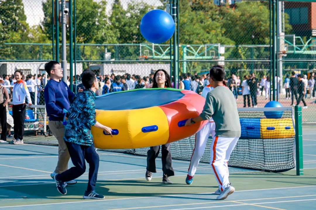 本届运动会不断创新赛事项目,27个田径竞赛项目中纳入了引体向上、立定跳远等体测项目,增加了药球、实心球等参与面广的项目,师生共同参与两人三足等趣味运动项目,拔河、跳长绳等集体特色项目。比赛项目丰富多彩、竞技性与趣味性并存,让每一位运动员享受到运动的乐趣,感受到团队的力量,营造出浓郁的体育氛围。