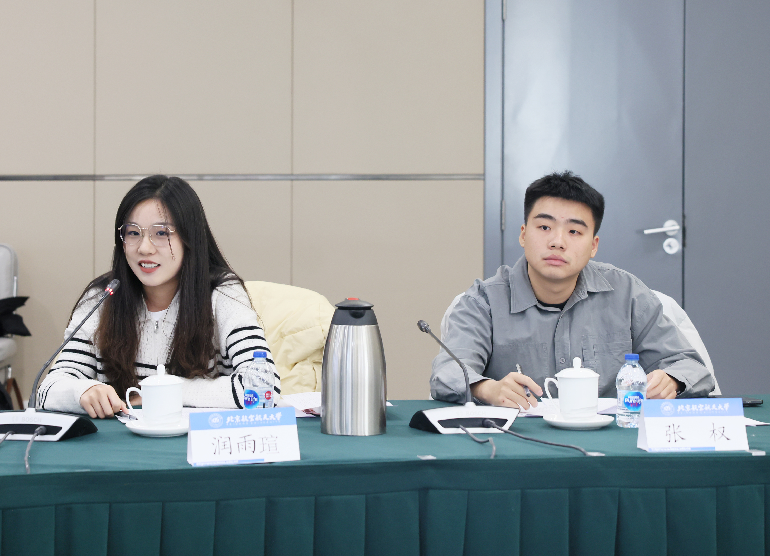 校学生会主席团成员赵逍遥分享了组织学生提案大赛、实践文化节等活动的经历,并希望进一步建立学生实践活动资源共享平台。校研究生会主席团成员张伟业讲述了组织“航向标”分享汇、职场启示录等活动的经历与感悟,希望加强学生就业指导与服务工作。校研团委副书记霍海鑫分享了受到英雄前辈事迹感染,选择航空院所作为就业单位的心路历程,并希望学校搭建更多的校企合作平台。校研究生会骨干黄飞宇分享了组织毕业季草地音乐节等活动的难忘经历,希望开展更多校园文化活动。学生合唱团团长润雨瑄分享了参演《罗阳》音乐剧的收获和体会,表示将传承罗阳精神,希望学校投入更多资源支持美育工作。