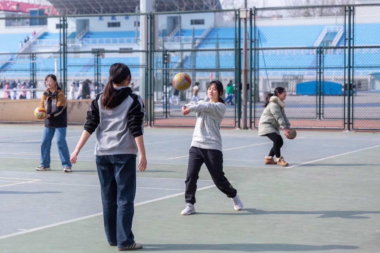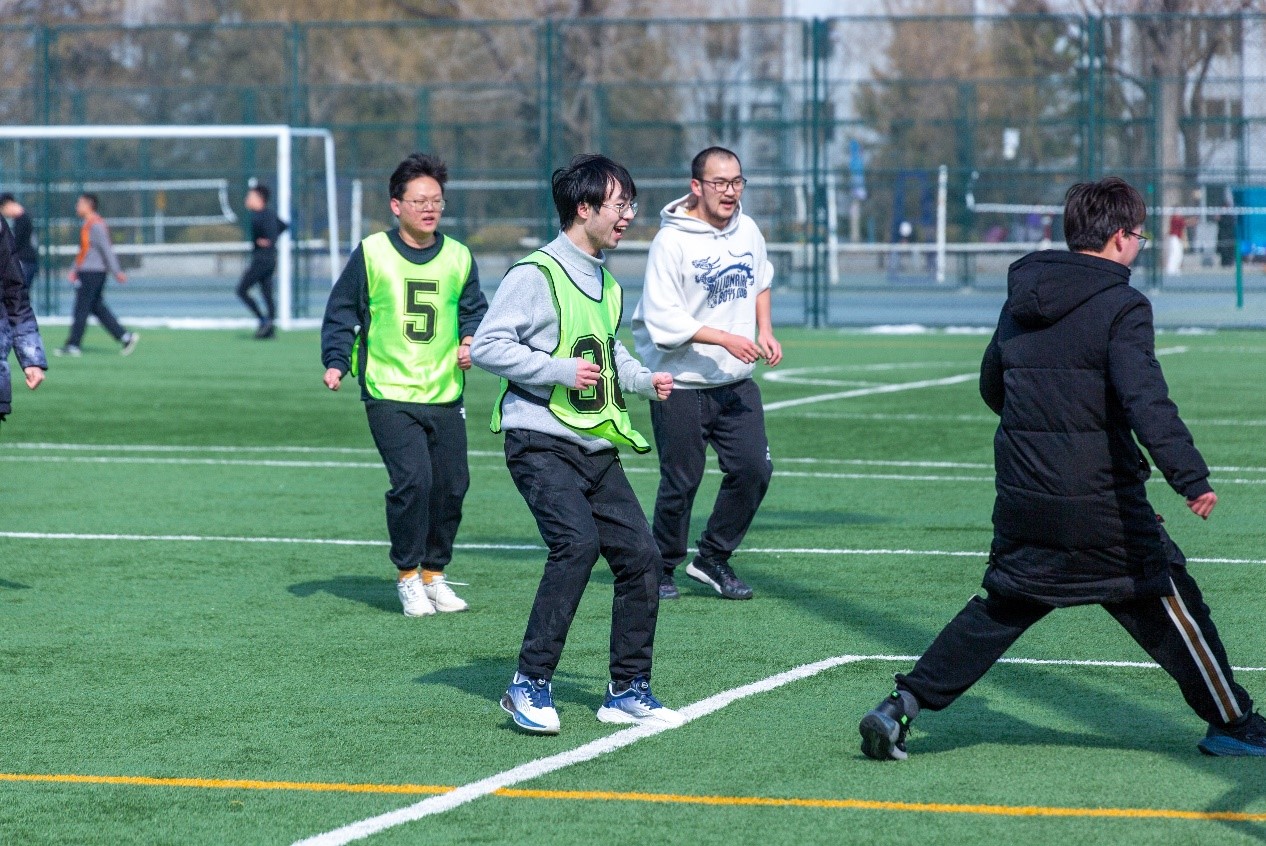 春光正好,微风不燥,同学们在运动场上挥洒汗水,步履坚定地奔跑,协调灵巧地控球,操场内外满是青春的身影。