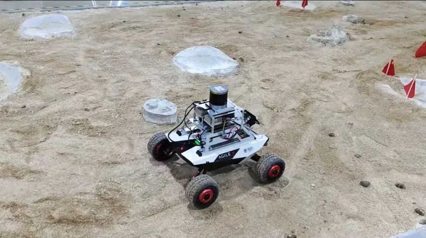 团队制作的机器人在任务三中穿越崎岖地形