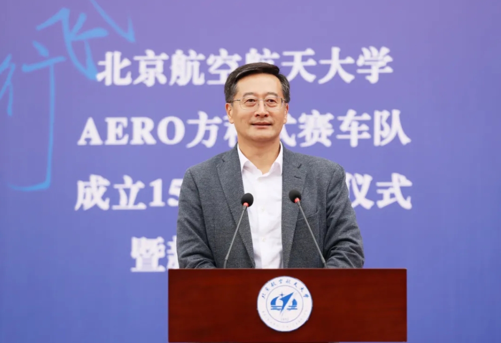 王云鹏对赛车队成立15周年表示热烈祝贺,对与会嘉宾对赛车队的关注以及社会各界力量对赛车队发展提供的大力支持表示由衷感谢,对赛车队成员取得的优异成绩表示祝贺。他表示,北航始终坚持为党育人、为国育才,健全科教协同育人机制,推进科教平台建设,全方位赋能大学生科技创新。希望同学们能够在实践锻炼中全面提升科技创新能力、工程实践能力、团队协作能力和组织管理能力,努力成长为堪当民族复兴重任的时代新人。王云鹏预祝北航AERO方程式赛车队取得卓越成绩,“我们在学校,等着大家凯旋!”