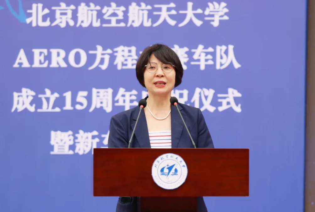 战静静对北航AERO方程式赛车队成立15周年表示祝贺。她表示,希望北航AERO方程式赛车队能够持续努力、脚步不停,继续追逐未知与无限、探索前沿与创新。中国大学生方程式汽车大赛今年已是第15届,是汽车产业培养汽车人才的重要平台,大赛将不断创新,策划推动新的比赛项目,为大家提供更为广阔的舞台。