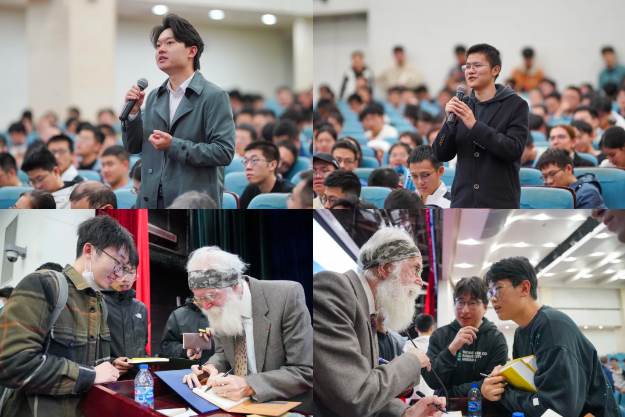 讲座现场氛围热烈,师生交流热情高涨。二十余位师生就讲座内容与Michel Talagrand院士提问交流。讲座结束后,众多同学与Michel Talagrand院士进一步交流,畅谈关于数学的认识和想法,并邀请Michel Talagrand院士合影留念。希望同学们通过本次讲座,坚持对数学的纯粹热爱;与国内外顶尖团队深入交流,在未知的空间中、在数学的道路上行稳致远。
