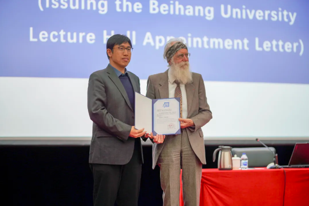 讲座前,赵巍胜致辞并为Michel Talagrand院士颁发北航大讲堂荣誉证书。后续,Michel Talagrand院士将在讨论班中与我校师生继续讨论开放问题的学术性思考。