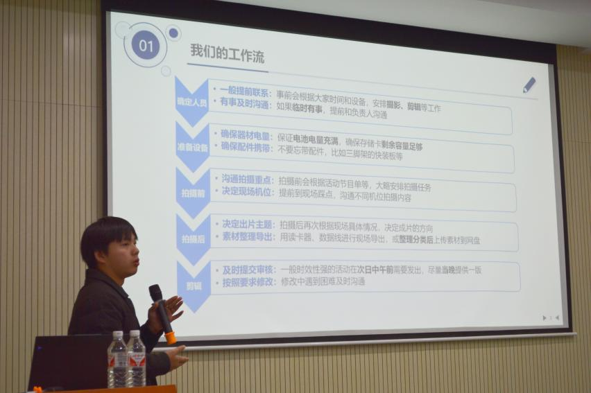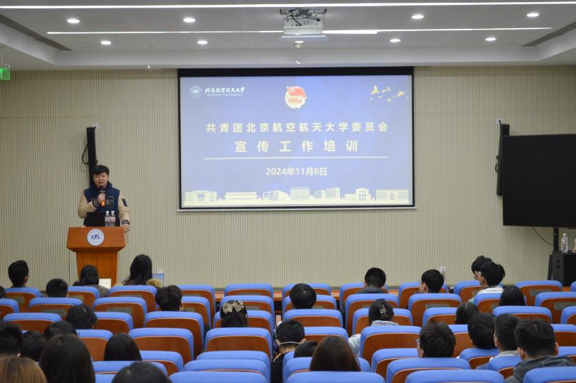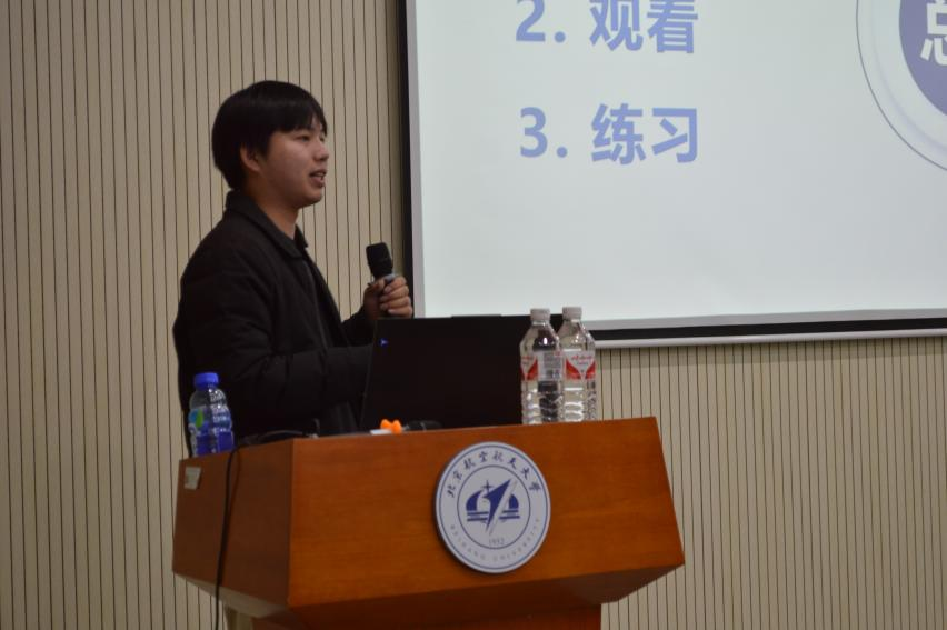 本次培训内容涵盖推送文案撰写排版、公文写作、摄影摄像、影片剪辑等校园宣传工作全流程、全视角技能。首先,校团委宣传部副部长芦骥越同学从“什么是校园宣传”的问题引入,强调各位学生干部在宣传活动中要提高政治站位,积极展现北航青年良好精神风貌。围绕“逻辑”这个关键词,从标题、开头、正文、结尾升华、排版规范五个方面介绍如何完成一篇完整的推送。从一个简短标题、三个基本段落、五个注意事项阐明新闻稿的写作方式,并通过举例对讲话稿、工作总结的写作结构进行深入剖析,提炼出“多写、多搜、多看、多学”的公文写作方法。建议学生干部们在工作中加强内部协调分工,促进宣传工作提质增效,从而实现“引领最一线的青年思想动态,回应最新鲜的青年兴趣,追踪最前沿的青年热点,传递最生动的青年温度”这一目标。