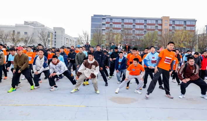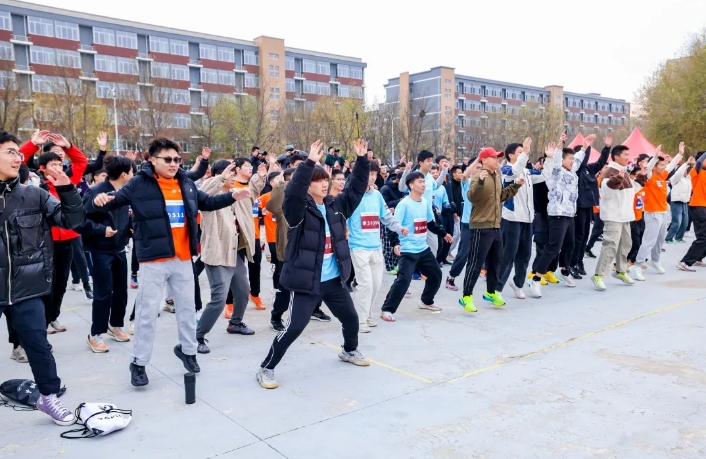 在张昊老师和体育部汪宇佳老师专业的带领下,师生们投入集体热身运动中,挖掘潜能,激发斗志,以最佳的状态迎接挑战。