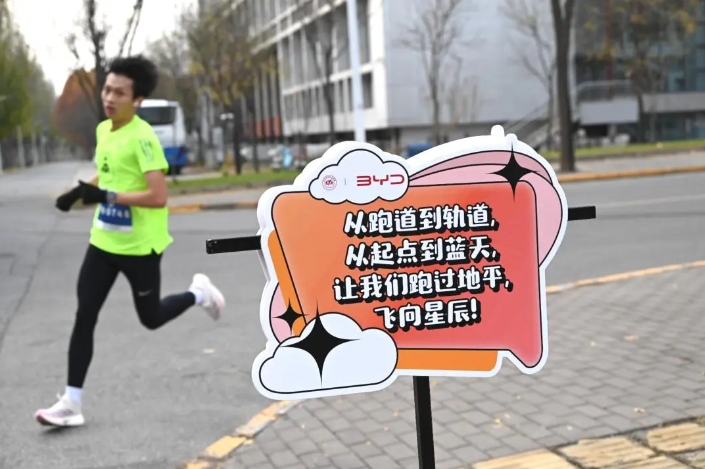 领跑员们的身影是赛道上靓丽的风景线,他们以平稳的速度引领赛道的方向,为周边的参赛者调整节奏。
