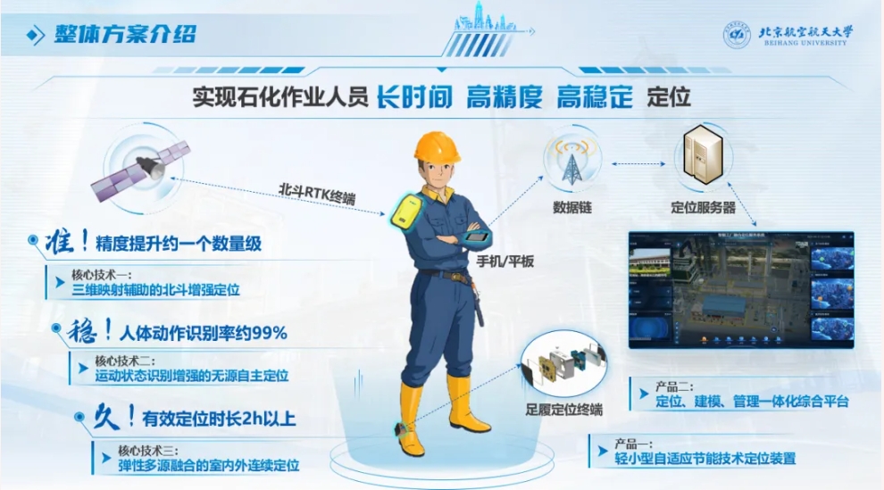 项目简介:本项目采用三维映射辅助增强的北斗增强定位、运动状态识别增强的无源自主定位和弹性多源融合的室内外连续定位,研制轻小型自适应节能技术定位装置,搭建石化人员综合定位与安全管理平台,实现定位精度提升约1个数量级,打造过硬定位技术,筑牢安全管理根基。
