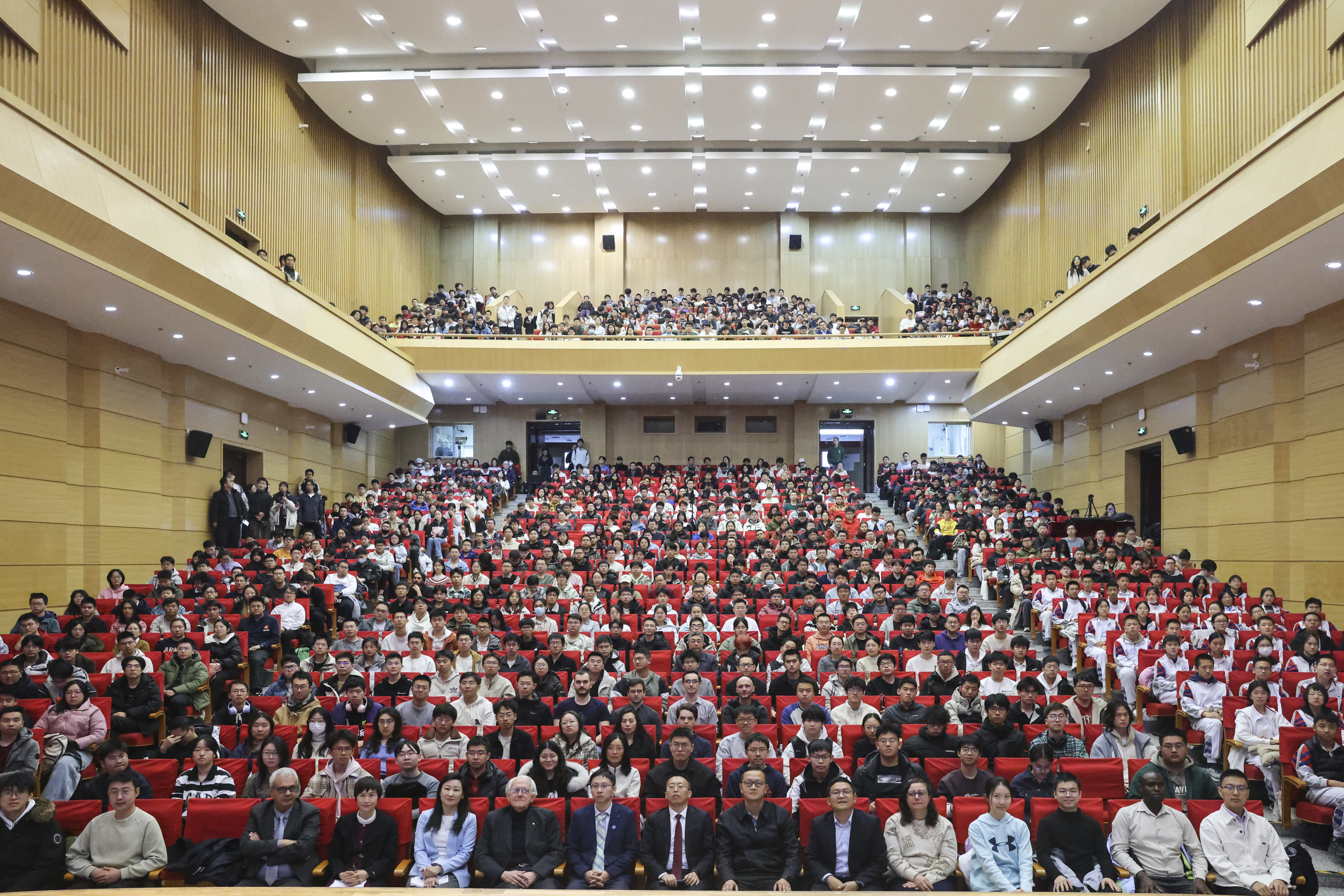 在提问交流环节,北航师生与Mourou教授积极互动,交流热情高涨。大家就讲座内容向Mourou教授提问,探讨了极端光学研究的现状、未来发展方向,利用激光清除太空碎片的可行性,科学与人类的关系等等。Mourou教授耐心解答了每个问题,并鼓励同学们勇于探索未知领域,将理论知识与实践创新相结合。讲座结束后,师生们纷纷邀请Mourou教授合影留念,为此次精彩的学术活动画上了圆满的句号。