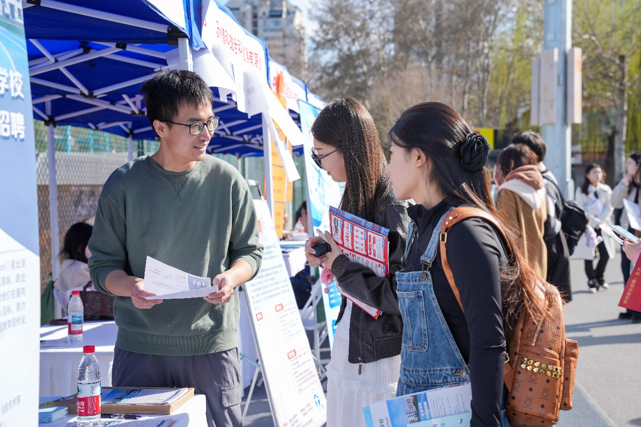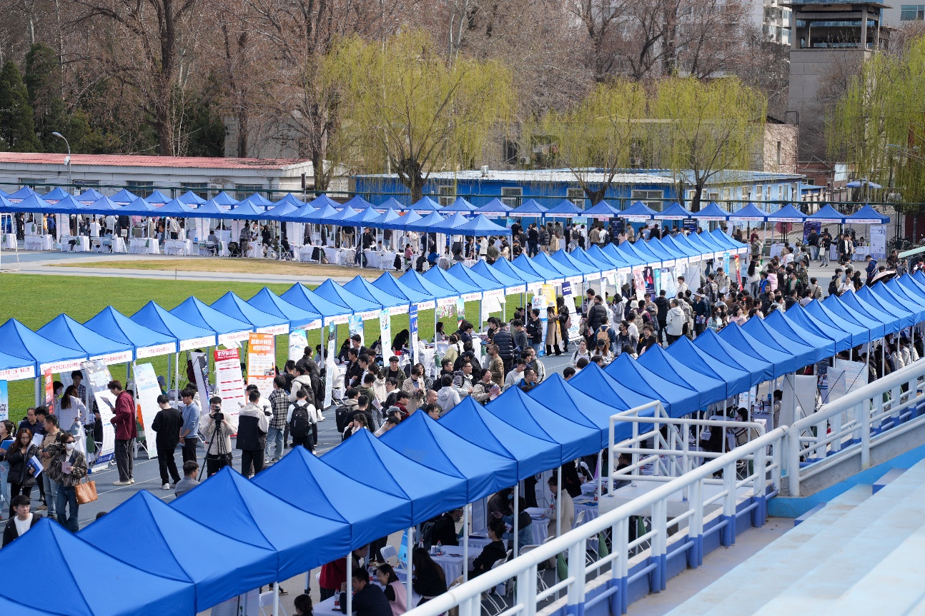 北航新闻网3月20日电(通讯员 赵敏 记者 任和/文 记者 邸白鹭 通讯员 邹雨初 张智博/摄影)春回大地,万物复苏,3月19日下午,北航在学院路校区体育场举行2025年春季首场大型综合双选会。本次双选会深化校政企三方紧密联动机制,充分整合资源、凝聚合力,来自北京、上海、四川、陕西、黑龙江等全国24个省份的350家企业参会,北京市经开区、厦门人社、中国移动集团、国机集团等地方政府和央企集团以组团方式参会。参会企业呈现了覆盖地域广、行业多、岗位优的特点,单位性质涵盖央国企、民营企业、事业单位、部队等,涉及制造业、信息技术、教育、金融业等16个行业,提供岗位约1.97万个。