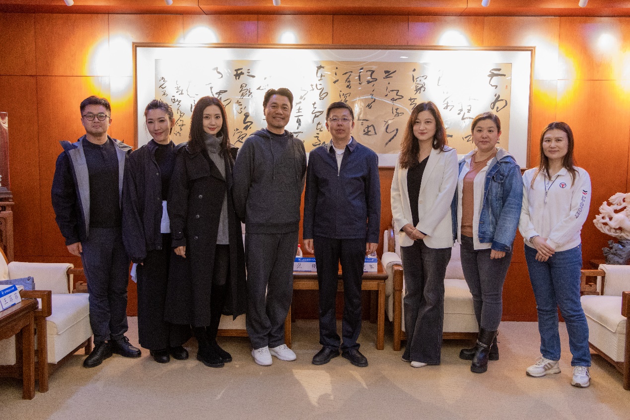 讲座开始前,新媒体艺术与设计学院党委书记苗建军及美育中心的老师们与焦刚亲切交流并赠送北航特色纪念品。