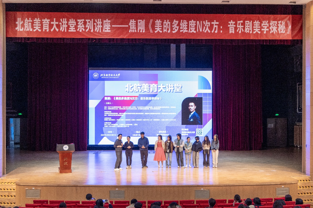 这次讲座不仅是一次知识的交流,更是一次沉浸式的艺术探索,让大家在互动中感受音乐剧的无限魅力!北航师生300余名在现场聆听。北航美育大讲堂是学校开展美育教育、拓展美育途径的重要平台,讲堂将继续邀请知名专家学者来校,持续推出系列高端讲座,为师生带来更多美育盛宴。