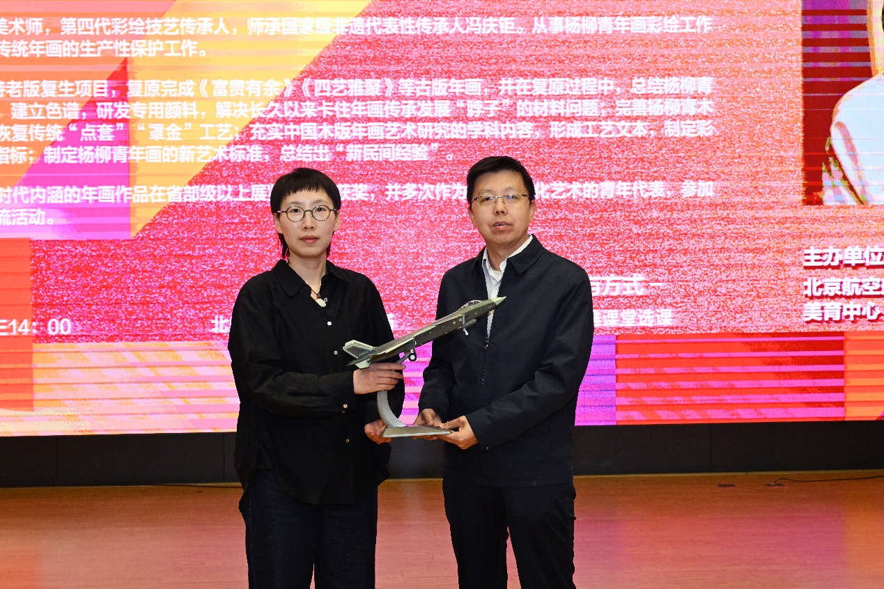 北航新闻网4月18日电(通讯员 高蕊 沈欣)4月16日下午,北航美育中心特邀天津杨柳青画社第四代彩绘技艺传承人、师承国家级非遗代表性传承人冯庆钜的高级工艺美术师王艳做客美育大讲堂,为师生带来“走进杨柳青木版年画:民间艺术的视觉盛宴”美育主题讲座。讲座由北航美育中心副主任宋泽惠主持。