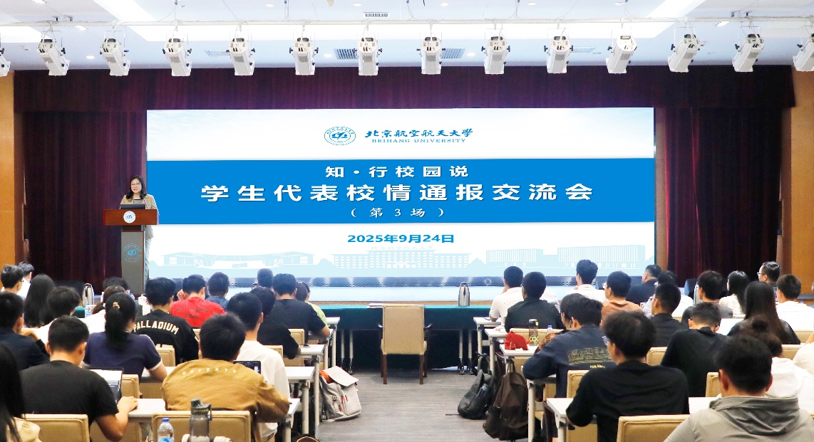 北航新闻网9月26日电(通讯员 郭晶晶/文 查路遥/摄影) 9月24日,“知·行校园说”学生代表校情通报交流会(第3场)在学院路校区如心会议中心大报告厅召开。副校长邓怡及相关部门负责人,校学生会代表、校研究生会代表及各学院新生代表、新生辅导员代表共80余人参会。