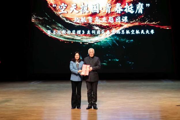 活动现场还邀请到刘光典烈士之子、中央党校(国家行政学院)兼职教授刘玉平先生,动情讲述了其父亲为实现祖国统一最终英勇就义的感人事迹。他将父辈“对党忠诚、不负人民”的精神力量娓娓道来,深深打动了在场的每一位听众。北航副校长邓怡为刘玉平教授颁发“北航双学籍飞行员兼职导师”聘书,期望引导未来空天人才从英烈事迹中汲取忠诚与担当的精神养分。