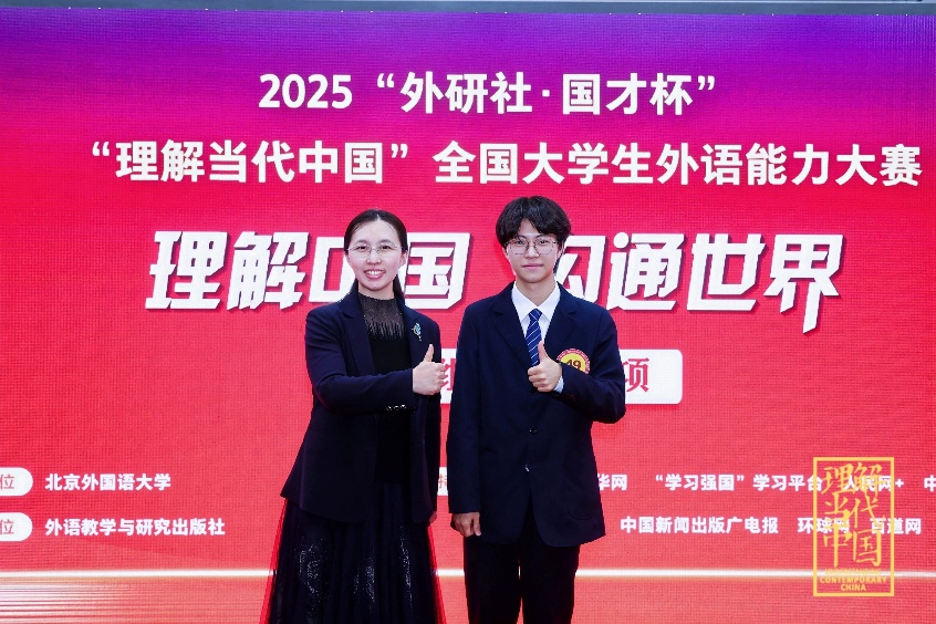 北航新闻网12月13日电(通讯员 范卓怡)12月8日,2025年“外研社·国才杯”“理解当代中国”全国大学生外语能力大赛在北京落下帷幕。我校外国语学院陈思睿与赵文杰同学凭借北京市赛金奖的优异成绩分别晋级“英语组笔译赛项”与“英语组口译赛项”国赛。最终,陈思睿从同场竞技的各省市289名晋级选手中脱颖而出,荣获国赛银奖,指导老师为刘颖、李蒙和郑薇;赵文杰挺进全国三十强,斩获国赛银奖,指导老师为郑薇、王沛和顿超。