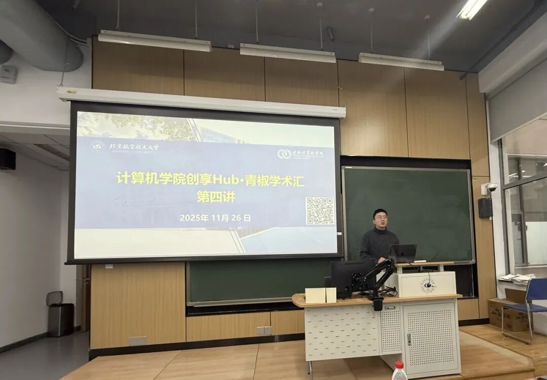 (通讯员 陈绍锋)11月26日,计算机学院“创享Hub·青椒学术汇”第四讲活动顺利举行。本次活动邀请吴洪宇老师与孙庆赟老师担任主讲嘉宾,分别围绕VR+AI医疗、图计算与行为智能作专题学术报告,活动由兼职辅导员王宇康主持。